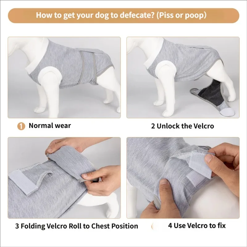 Help your dog recover comfortably with this dog recovery suit designed for post-surgery care. Ideal for sterilization recovery and wound protection, it prevents licking, scratching, and irritation to promote faster healing. The soft, breathable fabric ensures your pet stays comfortable throughout the day while allowing freedom of movement. Its snug fit acts as a gentle barrier, replacing the need for bulky cones or collars.