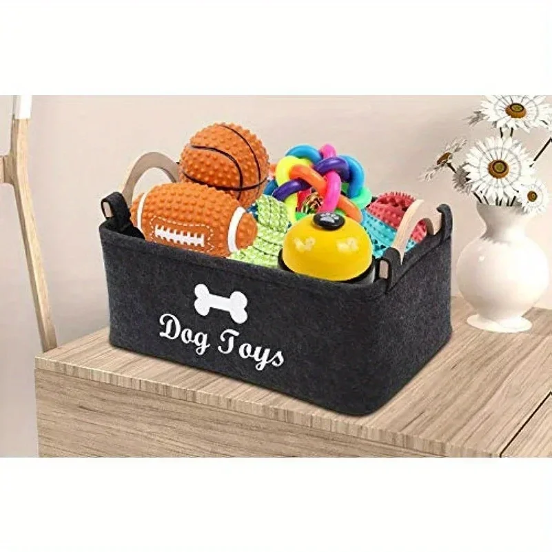Keep your home neat and organized with this stylish felt pet storage basket. Designed for storing cat and dog toys, it also works perfectly for dirty clothes, blankets, and cleaning supplies. Made from durable felt material, this basket offers a sturdy structure while remaining soft and lightweight. The spacious interior provides plenty of room for organizing pet essentials and household items in one place.