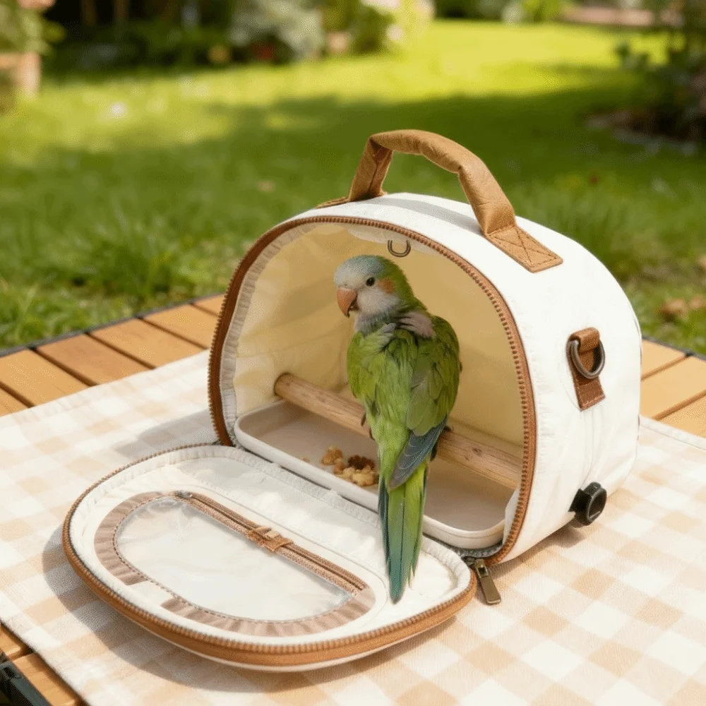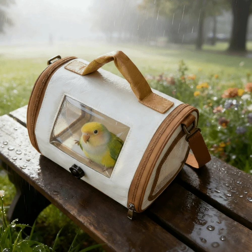 Travel safely and comfortably with your bird using this folding parrot travel carrier designed for convenience and security. Ideal for parrots and other pet birds, it provides a compact and protective space during outings, travel, or vet visits. The carrier features breathable ventilation holes to maintain proper airflow while keeping your bird comfortable inside. A transparent window allows pets to see outside while letting owners easily monitor them. The built-in tray helps keep the carrier clean and makes maintenance simple.
