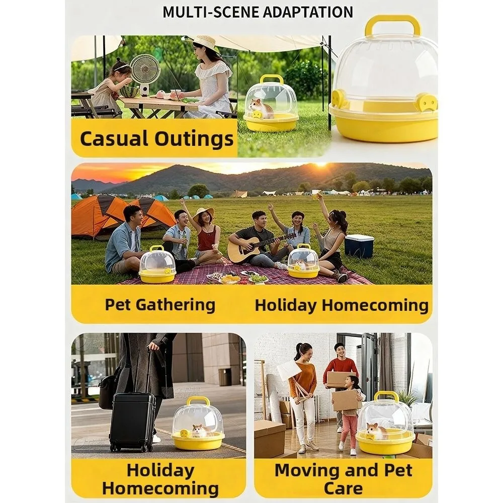Provide a safe and comfortable space for your small pet with this large portable hamster carrying cage. Designed for hamsters and other small animals, it offers a spacious interior that allows pets to move and rest comfortably. The transparent design lets you easily observe your pet, while the breathable ventilation holes maintain proper airflow to keep your pet comfortable. A secure safety lock helps prevent accidental escapes during transport.