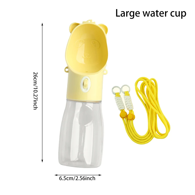 Keep your dog hydrated on the go with this portable dog water bottle cup. Designed for outdoor walks, travel, and adventures, it provides a convenient way to offer fresh water anytime, anywhere. The built-in cup design allows water to flow easily for drinking, making it simple and mess-free. Its compact and lightweight structure fits easily into bags or can be carried by hand during walks.