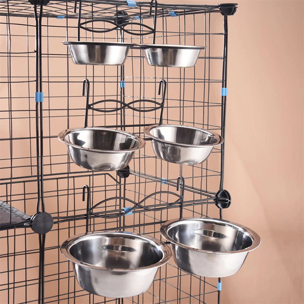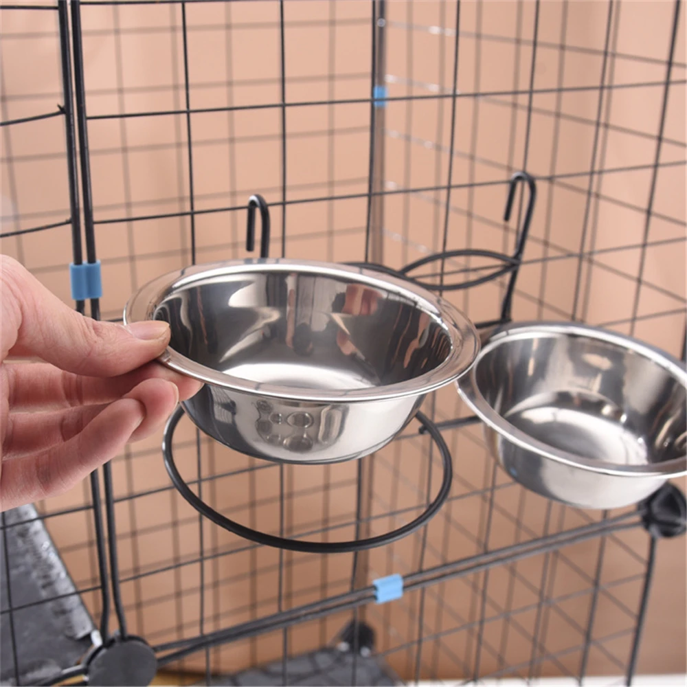 Make feeding time cleaner and more convenient with these stainless steel dual hanging pet bowls. Designed for dogs, cats, and puppies, this double-bowl setup allows you to serve both food and water in one secure system. The hanging design easily attaches to cages or crates, keeping bowls elevated to reduce spills and contamination. Made from high-quality stainless steel, the bowls are durable, rust-resistant, and safe for everyday use.