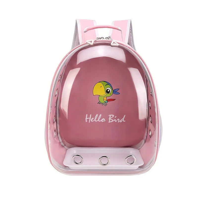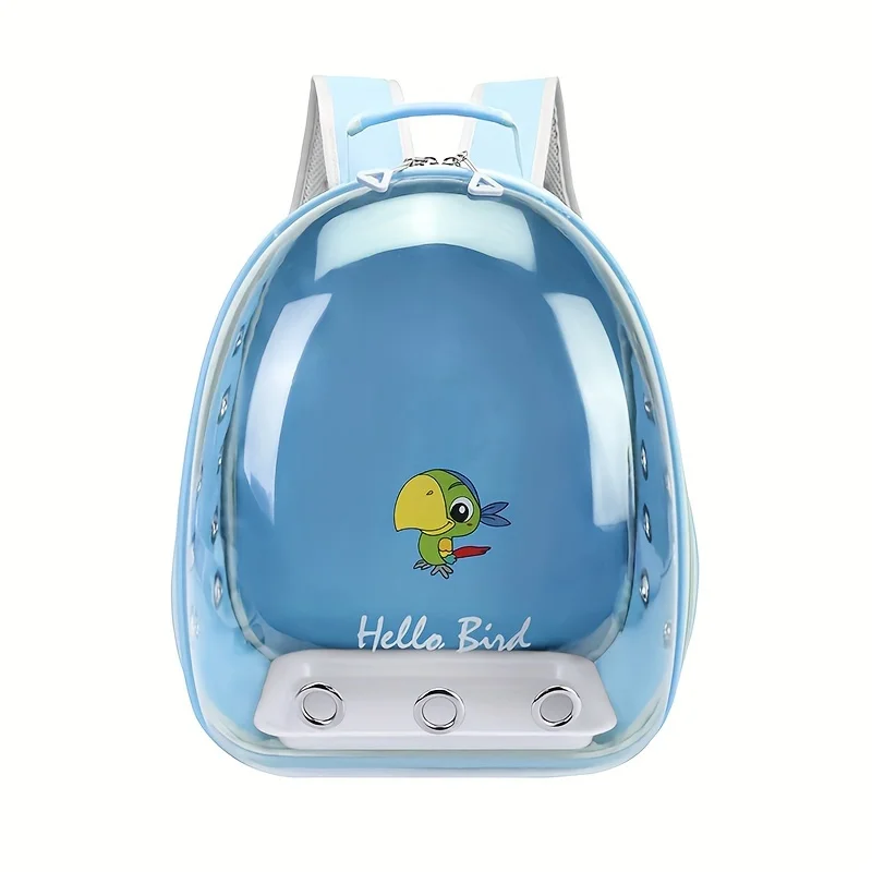 Travel comfortably with your bird using this transparent portable bird carrier backpack. Designed for parrots and other small birds, it provides a safe and spacious environment for outdoor trips, vet visits, and travel. The clear front panel allows your bird to observe the surroundings while giving you a full view of your pet. The breathable ventilation design ensures proper airflow to keep your bird comfortable during transport.